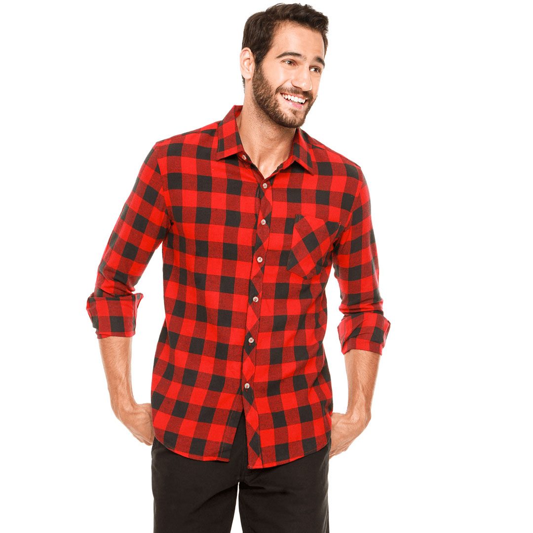 Camisa Broken Rules Manga Longa Xadrez Vermelha, com padronagem xadrez e um bolso. Possui modelagem reta, mangas longas, gola de ponta e fechamento por botões.
